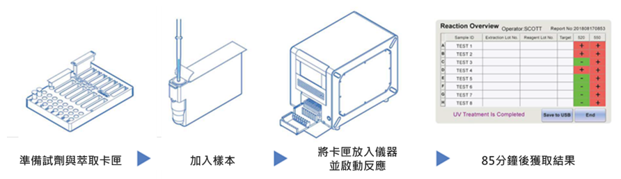 POCKIT Central樣本萃取與核酸分析流程示意圖